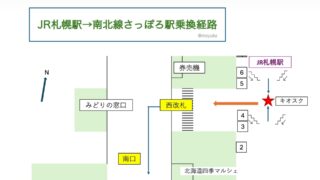 南北線沿線 地下鉄南北線さっぽろ駅乗換経路略図| Transfer Route from JR Sapporo Station to Namboku Line Sapporo Station JR札幌駅から南北線さっぽろ駅への乗換経路の略図を掲載します。印刷したい方は、PDFの方をダウンロードしてください。 2025.11.28 2025.12.03 南北線沿線札幌市街地-地下編